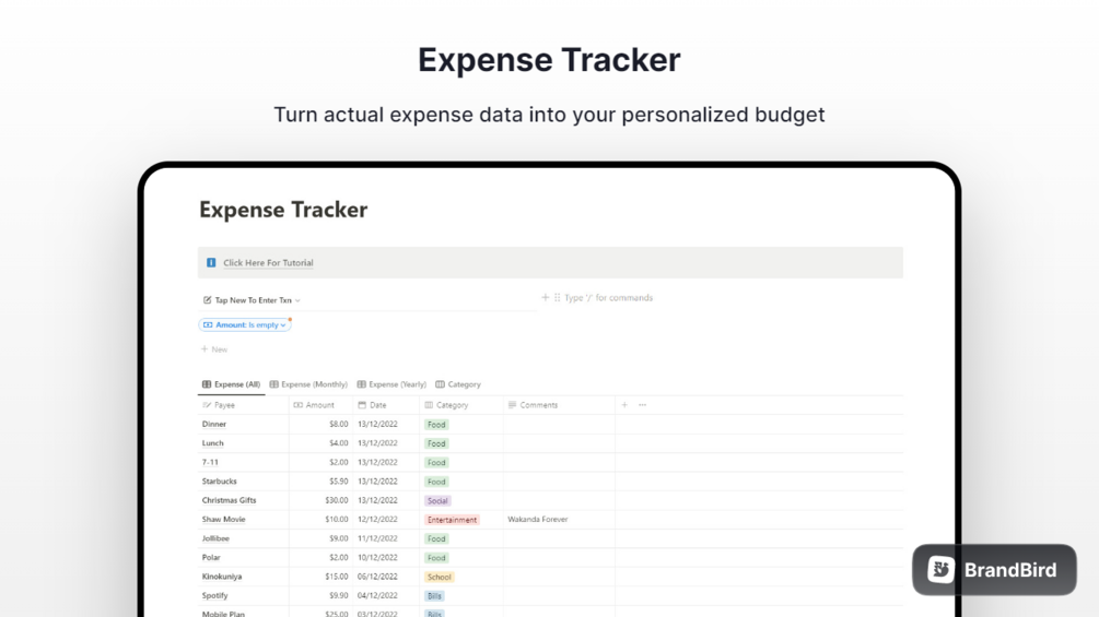 - As you get more used to the Expense Tracker, you’ll start to identify the main categories of where your expenses belong to. This is essential to the creation of your personalized budget.