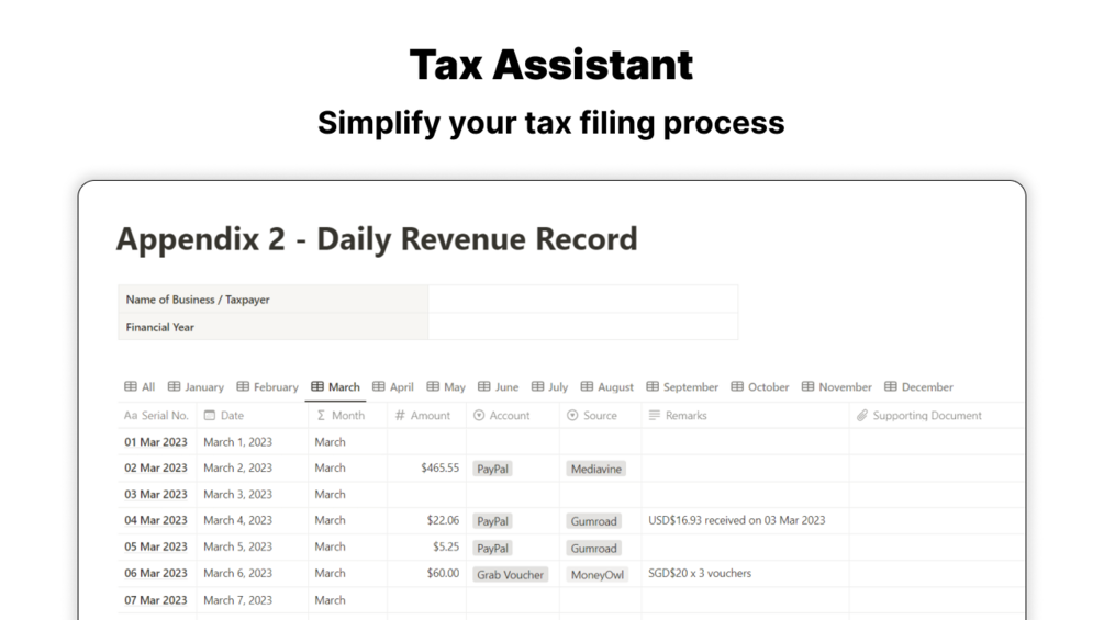 Tax Assistant is an all-in-one solution for anyone who have been engaging in online activities such as the following for a profit: